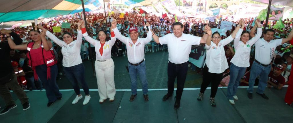 Xicotepec de Juárez, Puebla. Ante más de 4 mil personas en la recta final de su campaña, el candidato de la Megacoalición «Sigamos Haciendo Historia» Alejandro Armenta reconoció el potencial económico de la Sierra Norte de Puebla, mencionó que el estado debe convertirse por el bien de los micro, pequeños y medianos empresarios en proveedor de mercancías para los países de Europa, Asía y las Américas que serán trasladadas por el tren interoceánico