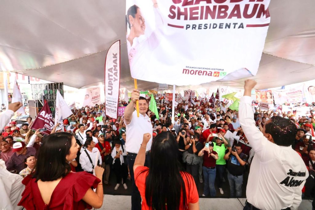 San Martín Texmelucan, Puebla. Se realizará la reorganización comercial y construcción de la central de abasto porque es una región textilera, agropecuaria con vocación de generar economía, el municipio está ubicado en una zona privilegiada, aseguró el candidato de la Megacoalición «Sigamos Haciendo Historia» Alejandro Armenta en el cierre de campaña regional.