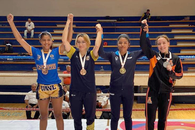 En el último día de competencias, la Máxima Casa de Estudios en Puebla sumó seis medallas en kick boxing: Fátima Ramos López, de la Facultad de Cultura Física, se llevó el oro; Arleth Godos Parianez, de la Facultad de Ciencias Físico Matemáticas, plata; Bleady Nahomi Dorantes García, de la Facultad de Artes, plata; y Evelyn Tlapayatlacomulco, de la Facultad de Derecho, bronce.