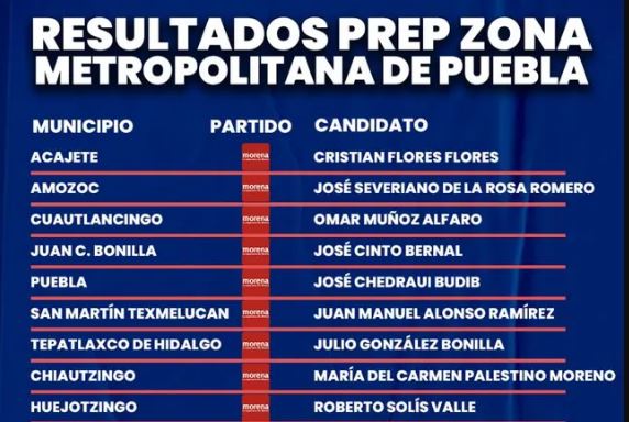 Morena se lleva 11 ayuntamientos en zona metropolitana de Puebla