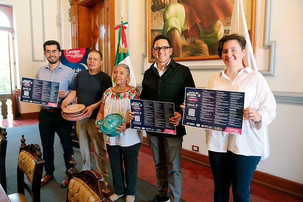 Esta rueda de prensa también contó con la presencia de José Carlos Huerta Ramírez, director de Turismo; Claudia Reed Martínez, directora de Vinculación y Economía Social, e Israel Castañeda González y Magdalena González Hernández, de Artesanías Damarte.