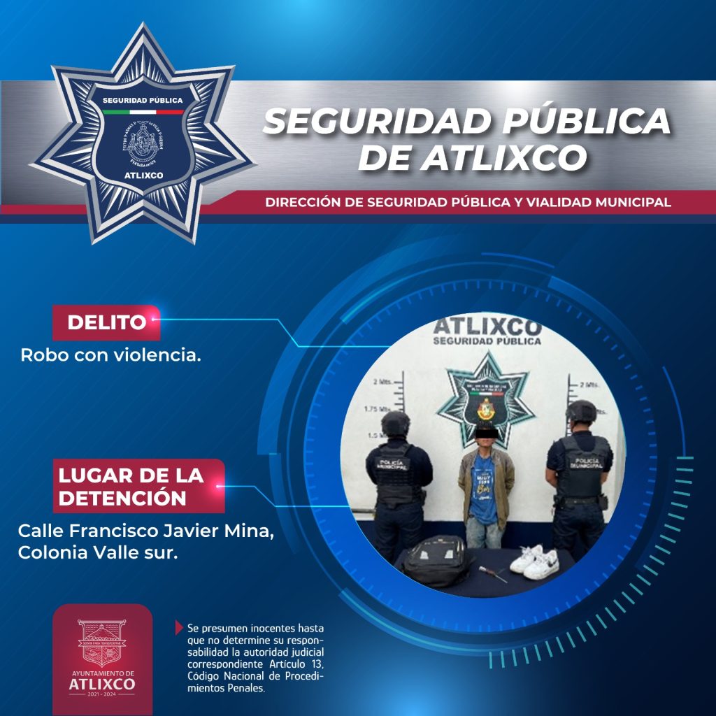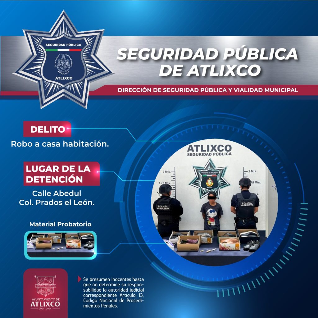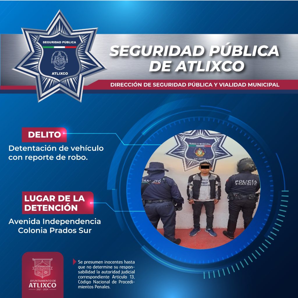 En una acción coordinada con la ciudadanía y derivado de los diferentes recorridos que realizan elementos de la Secretaría de Seguridad Pública del municipio, se logró la detención de 4 masculinos presuntamente implicados en una serie de robos perpetrados en Atlixco.