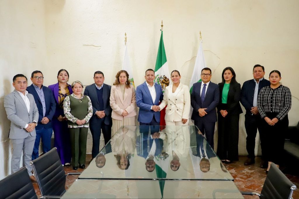 San Andrés Cholula, Puebla. – El presidente municipal de San Andrés Cholula, Mundo Tlatehui, recibió a la presidenta municipal electa, Lupita Cuautle, para llevar a cabo la Primera Reunión para la Transición.