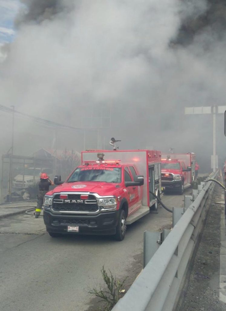 San Andrés Cholula, Puebla. – Bomberos de San Andrés Cholula junto con los municipios de Atlixco, Ocoyucan, Puebla, San Pedro Cholula, Xoxtla, así como del gobierno estatal, lograron controlar y sofocar el incendio de una bodega en el municipio de San Gregorio Atzompa.