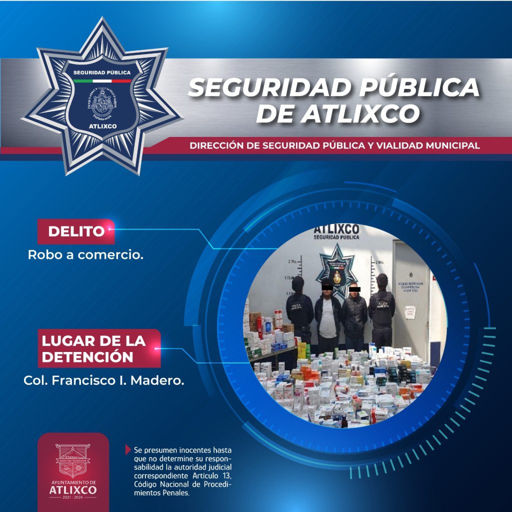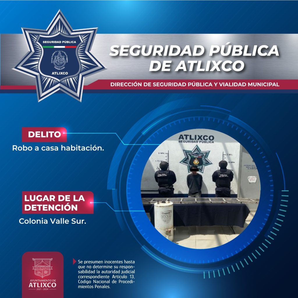 SEGURIDAD PÚBLICA ATLIXCO LOGRA DETENCIONES POR DIFERENTES ROBOS