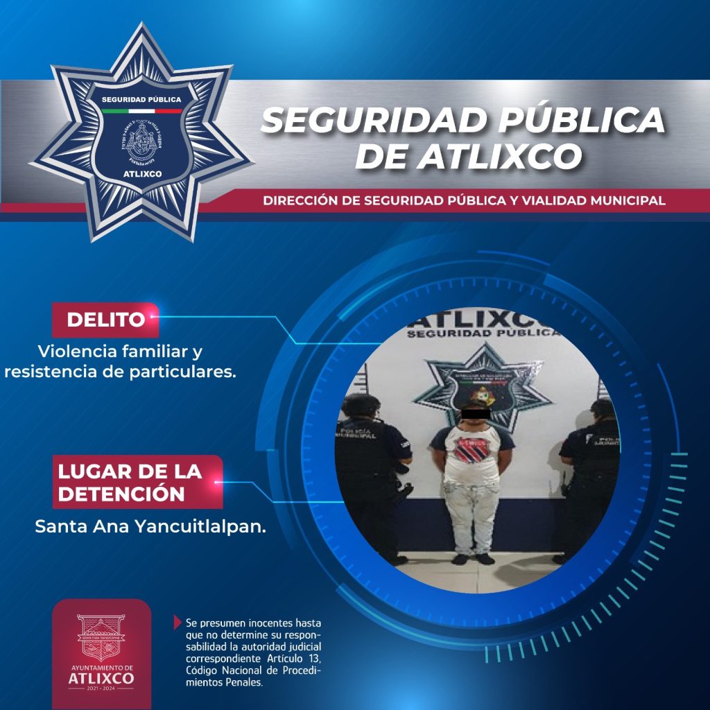 Por último, un masculino 27 años de la comunidad de Santa Ana Yancuitlalpan, quien golpeó a su pareja y agentes policiales durante su arresto, fue presentado ante la FGE para el trámite correspondiente por el delito de Violencia Familiar y Resistencia de Particulares.