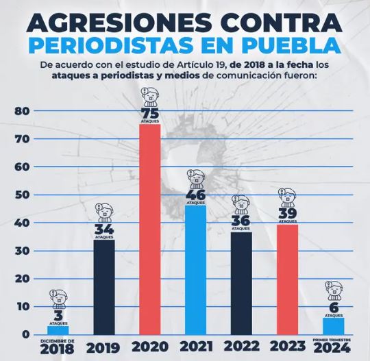 Puebla ocupa el tercer lugar a nivel nacional en agresiones contra periodistas y medios de comunicación contabilizadas durante el sexenio del presidente Andrés Manuel López Obrador.