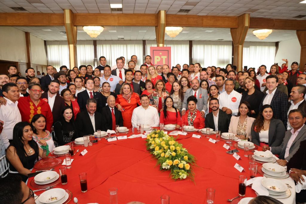 Al evento acompañaron al gobernador electo de Puebla, y al dirigente nacional del PT, Ernesto Villareal Cantú, coordinador político nacional; Nora Merino Escamilla, diputada electa; José Antonio López Ruiz, diputado federal; Esther Martínez Romano, diputada local electa; Angélica Alvarado, diputada local electa; Xel Arianna Hernández García, diputada local electa; José Luis Figueroa Cortes, diputado local electo y Mónica Silva, sindica electa en el municipio de Puebla.