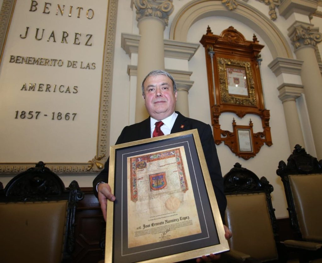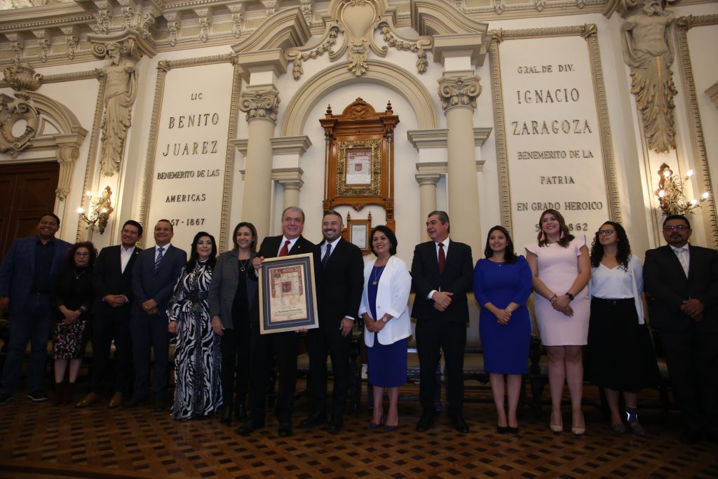 Este viernes, en el salón de Cabildos del Ayuntamiento de Puebla, el alcalde, Adán Domínguez Sánchez entregó una copia de la Cédula Real al abogado José Ernesto Ramírez López, entre otros seis abogados poblanos.