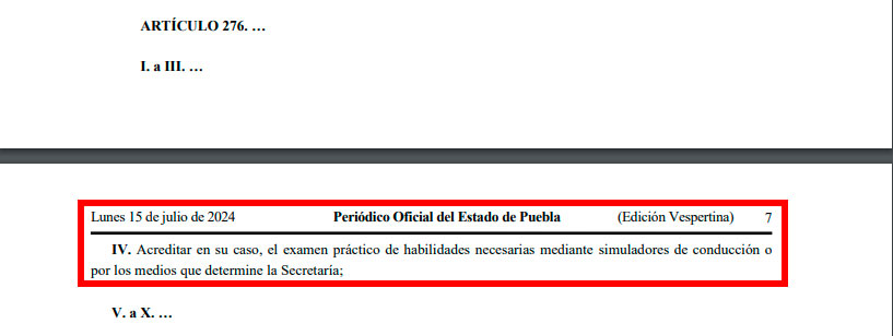 A partir de 2025, será necesario realizar y aprobar un examen práctico para obtener la licencia para conducir en Puebla, de acuerdo con una modificación del Gobierno estatal a la Ley de Transporte publicada en el Periódico Oficial del Estado.