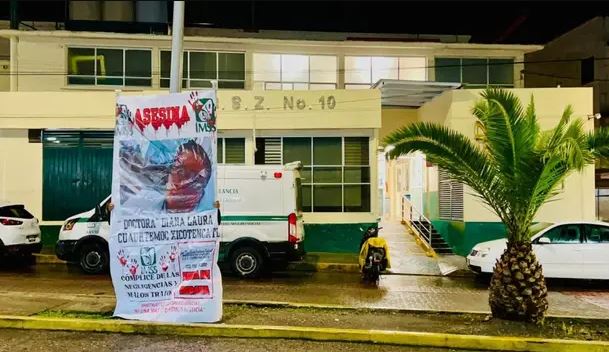 Afuera de la clínica colocaron lonas de la doctora en cuestión y exigieron a la nueva delegada, Magdalena Tinajero Esquivel, su acción al respecto, pues desde que llegó no se ha percibido su operatividad.
