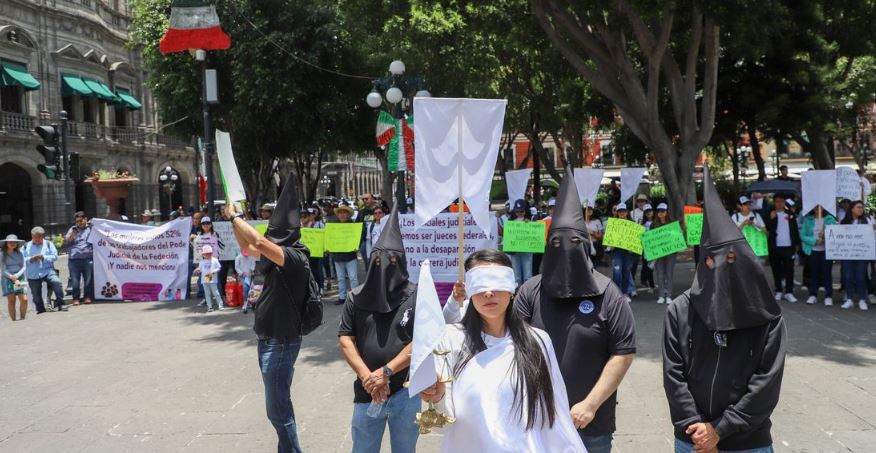 Trabajadores y trabajadoras del Poder Judicial de la Federación (PJF) en Puebla se manifestaron en el zócalo de la ciudad en contra de la reforma que impulsa el presidente de México, Andrés Manuel López Obrador, por considerar que afectará sus derechos laborales.