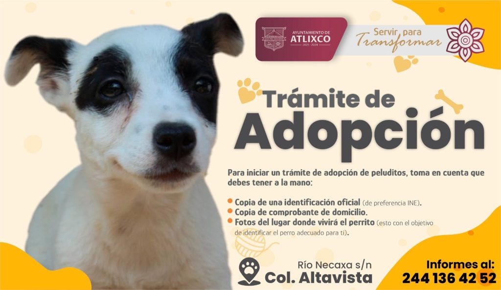 Para más información sobre «Adógtame», sigue las redes sociales del Ayuntamiento de Atlixco (https://www.facebook.com/AytoAtlixco) o Secretaría de Bienestar Atlixco (https://www.facebook.com/bienestarmx) o bien, llama al CEMA: 244 761 9323.