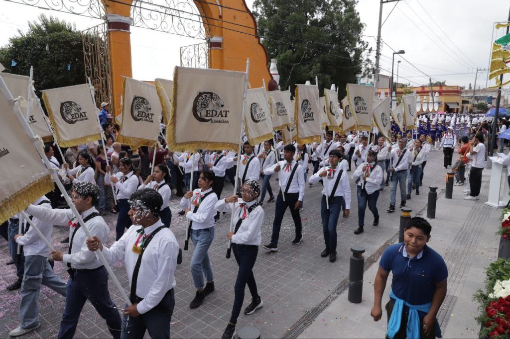 En el Desfile Cívico participaron más de 800 servidores públicos de las dependencias que forman parte del Ayuntamiento de San Andrés Cholula, así como 12 contingentes de instituciones educativas del municipio, e integrantes de grupos de la sociedad civil, resultando en saldo blanco en estas Fiestas Patrias 2024.