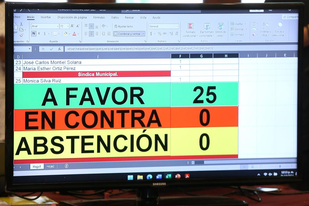 Lo anterior, de acuerdo con la lectura del dictamen, a cargo del secretario general del Ayuntamiento, Joaquín Espidio Camarillo, a fin de que los contribuyentes que se encuentren al corriente en el cumplimiento de sus obligaciones fiscales, puedan pagar durante el periodo comprendido del 15 de noviembre al 29 de diciembre del año en curso tales contribuciones correspondientes al ejercicio fiscal 2025 con las tasas, cuotas y/o tarifas derivadas de valores del ejercicio fiscal 2024, con un descuento del 5 por ciento.