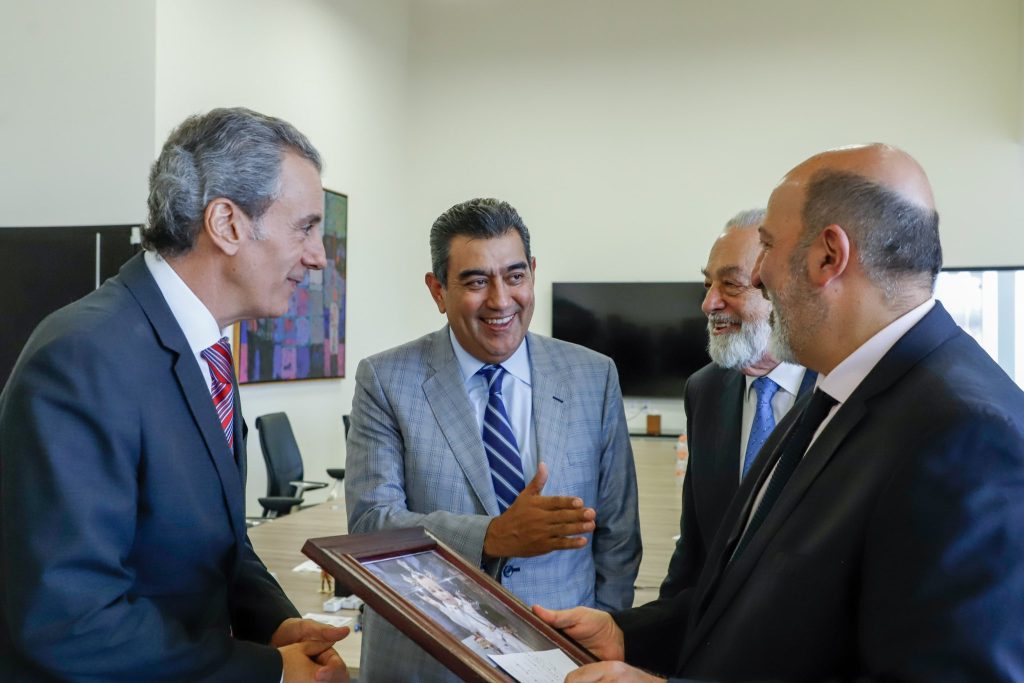 El gobernador Sergio Salomón Céspedes Peregrina y el mandatario electo, Alejandro Armenta Mier recibieron al empresario Carlos Slim en su visita a Puebla, reunión en donde también participó el edil capitalino, José Chedraui Budib.