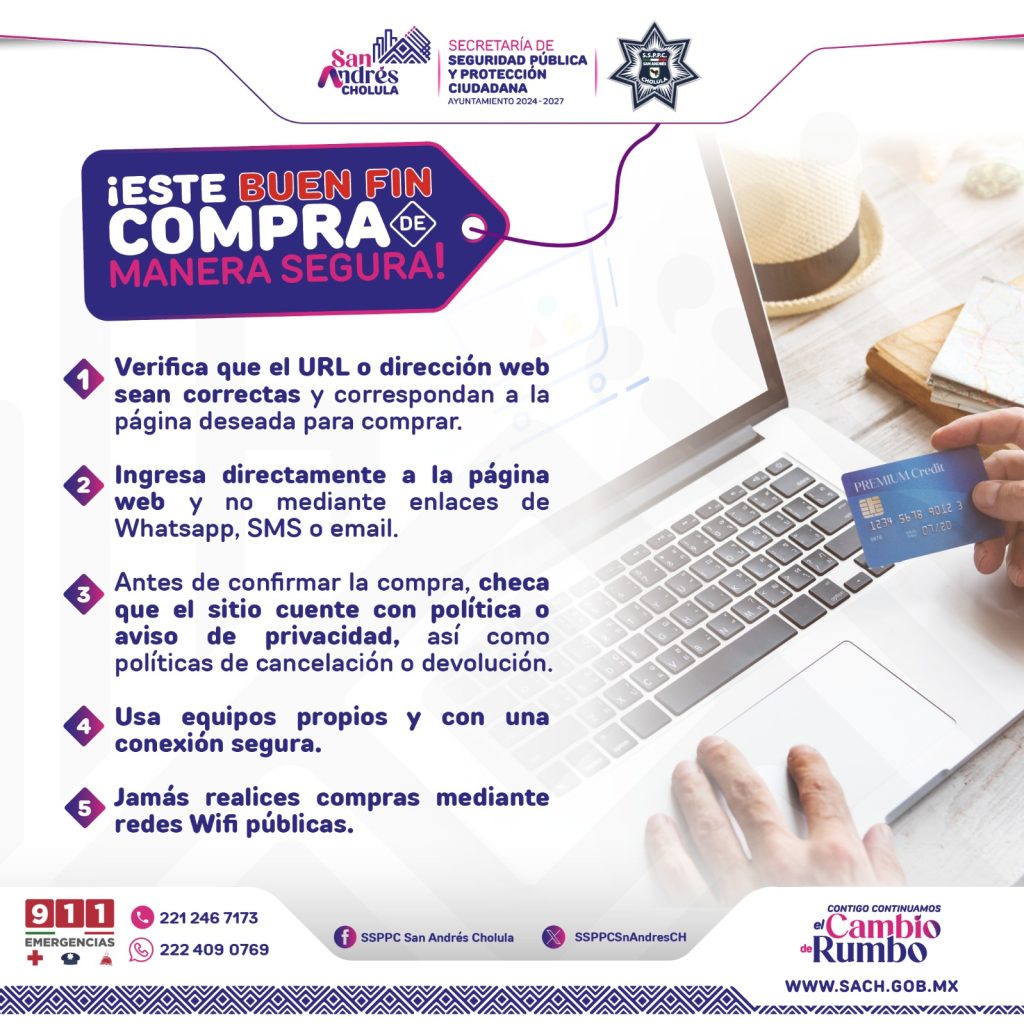 Adicionalmente, la dependencia policial emitió algunas recomendaciones para llevar a cabo compras de manera segura como son: Distribuir el dinero en diversas partes de la ropa, no portar objetos de valor a la vista, cuidar en todo momento el bolso o cartera; además de no contar el dinero en efectivo frente a las personas y procurar realizar pagos con tarjeta.