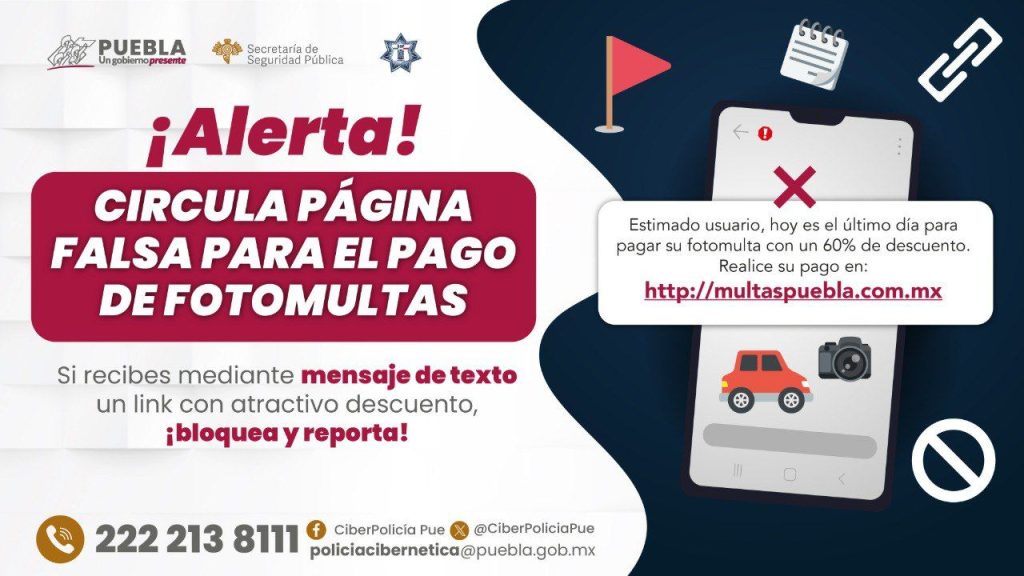 ¡No caigas en estafas! Alertan difusión de una página falsa para el pago de fotomultas en Puebla