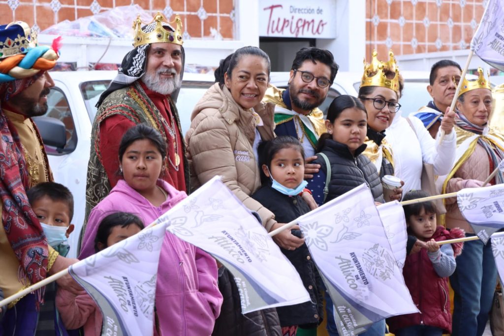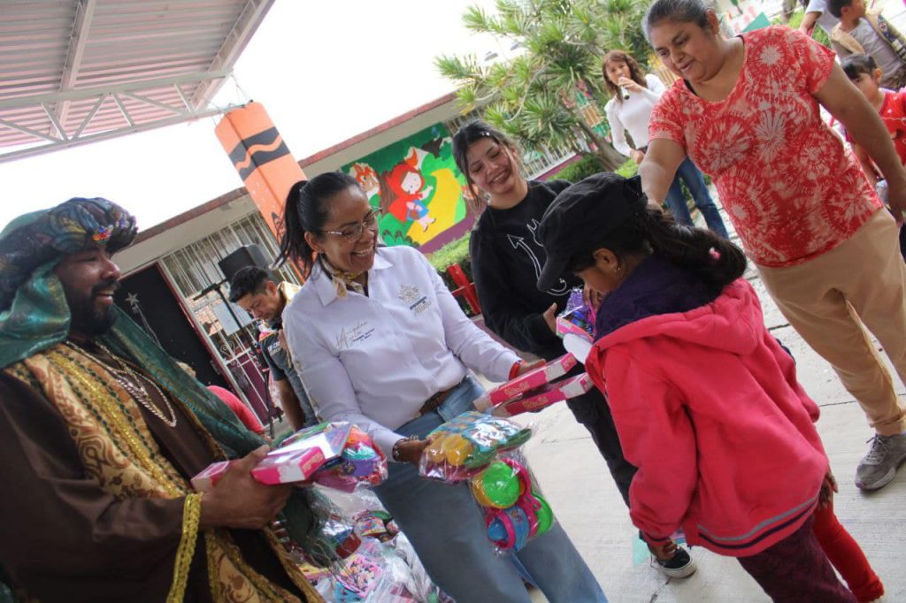 La presidenta municipal de Atlixco, Ariadna Ayala acompañó a Melchor, Gaspar y Baltasar para entregar más de 25 mil juguetes a niñas y niños de todas las colonias y juntas auxiliares del municipio.