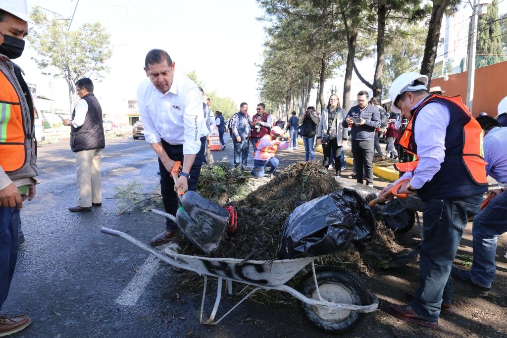 - Con brigadas de diferentes dependencias, el gobernador encabezó su 4a faena en uno de los accesos de la ciudad que comunican con Tlaxcala.