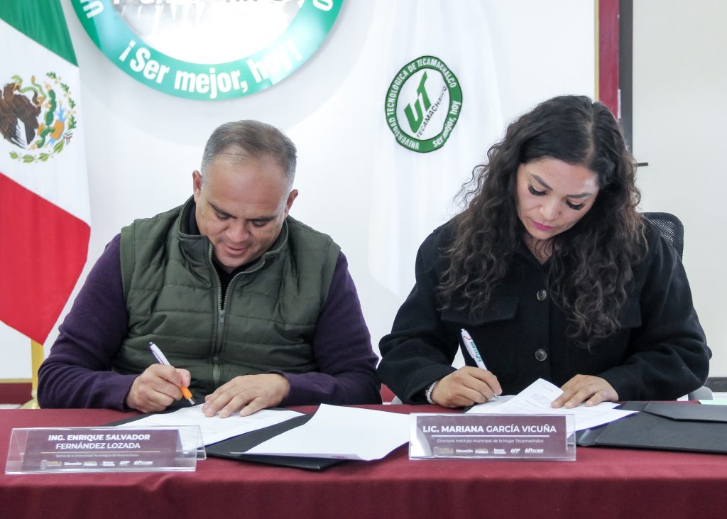TECAMACHALCO, Pue.- Con el propósito de impulsar la educación y generar oportunidades en beneficio de la comunidad universitaria y la sociedad, la Universidad Tecnológica de Tecamachalco (UTTecam) firmó un convenio de colaboración con el Instituto Municipal de la Mujer (IMMUJER).