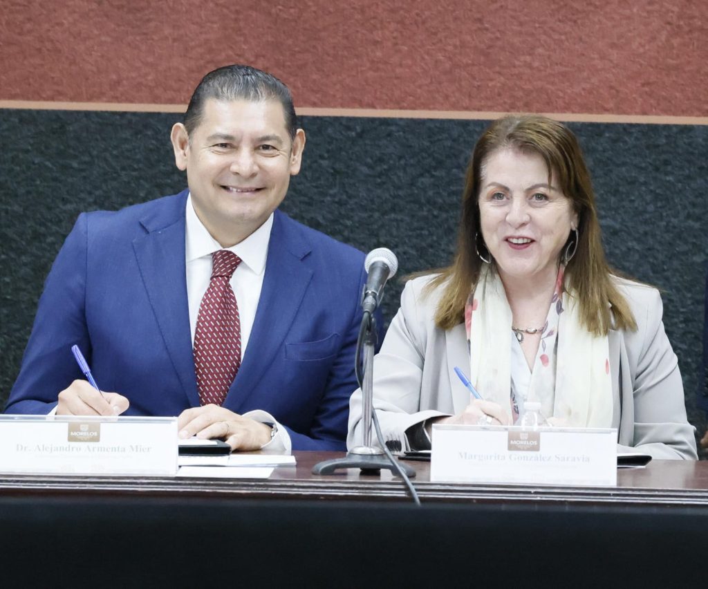 CUERNAVACA, Morelos.- Con el objetivo de generar estados seguros y bajo la directriz de la presidenta Claudia Sheinbaum, el gobernador de Puebla, Alejandro Armenta y su homóloga del Estado de Morelos, Margarita González Saravia, firmaron un Convenio Marco de Colaboración para Atención de Temas de Interés Común.