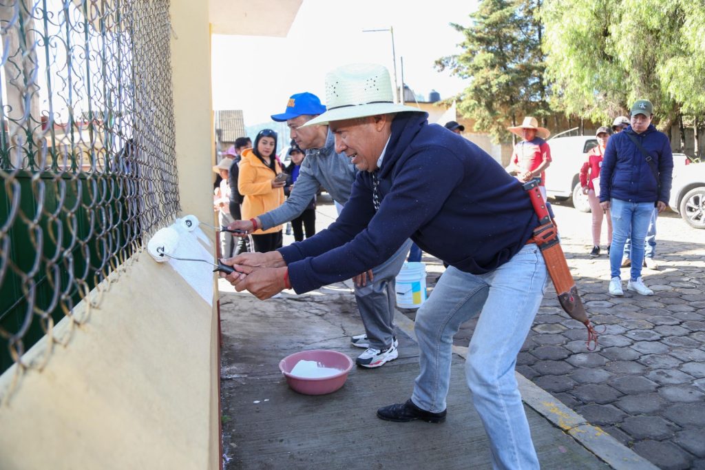 Las autoridades junto a la comunidad de Temextla y docentes, pintaron el plantel y limpiaron los espacios al aire libre.