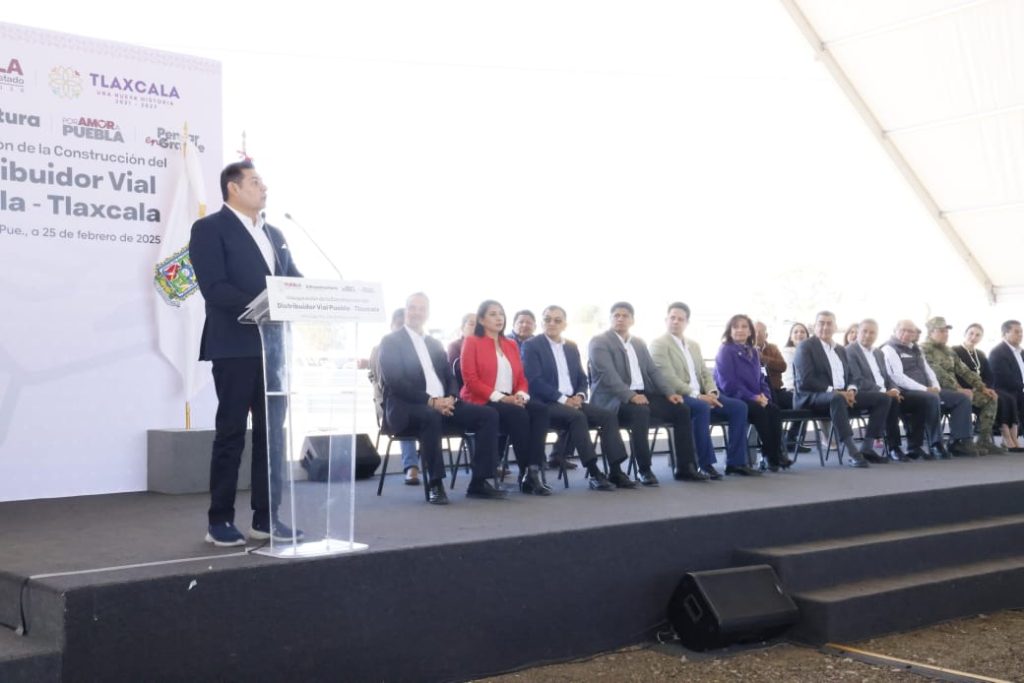 CORONANGO, Pue.- Al inaugurar el Distribuidor Vial Puebla -Tlaxcala el mandatario Alejandro Armenta reconoció el trabajo en equipo del ex gobernador Sergio Salomón Céspedes y la gobernadora de Tlaxcala, Lorena Cuéllar, para impulsar la construcción de esta obra emblemática que beneficia a las y los habitantes de ambos estados.
