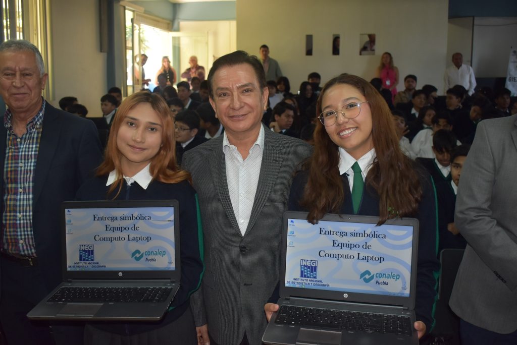 Recibe Conalep Puebla donación de 150 laptops del INEGI