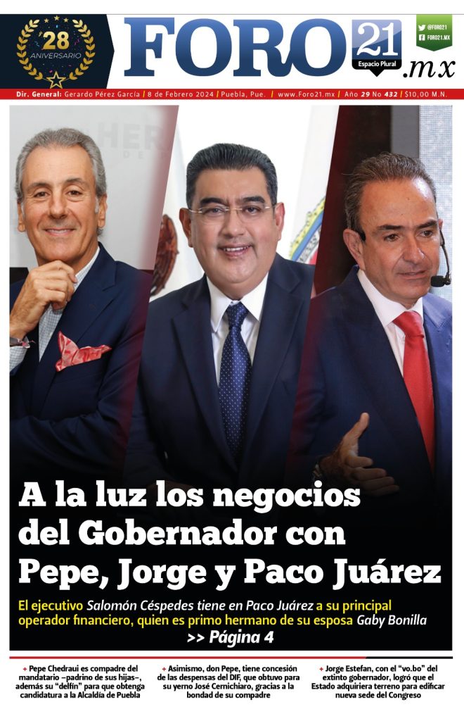 A propósito del tema: quién ordenó “comprar” –en todos los puestos de periódicos- la edición de Foro 21 del 8 de febrero 2024, con la portada: