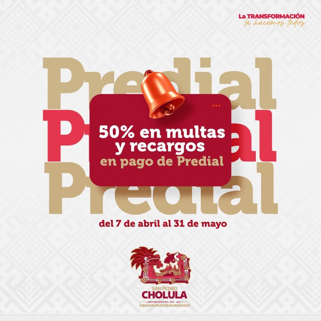 Con el objetivo de incentivar a la ciudadanía a ponerse al corriente en el pago de sus contribuciones, el gobierno de San Pedro Cholula, encabezado por la presidenta municipal Tonantzin Fernández, invita a las y los cholultecas a aprovechar el programa de condonación del 50 % en multas y recargos del impuesto predial.
