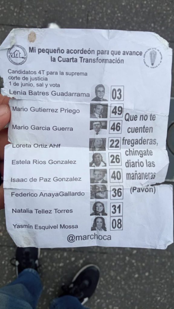 Resta esperar si este listado con número y nombre de las y los candidatos es la que resulta ganadora en la elección, que por primera vez se hará de jueces, magistrados y ministros del Poder Judicial Federal.