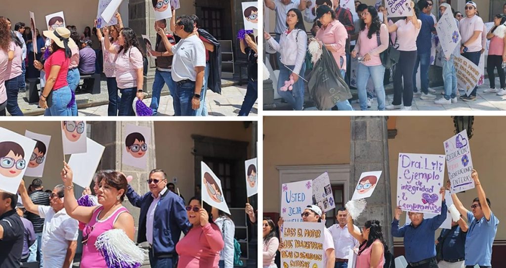 Con porras y matracas, grupo de alumnos y docentes postulan a Lilia Cedillo en comisión de Auscultación BUAP