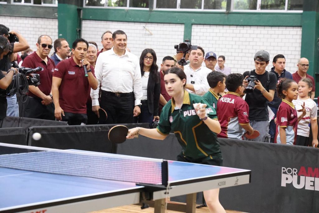 CIUDAD DE PUEBLA, Pue.– Como parte de la estrategia integral para la construcción de paz y el fortalecimiento del tejido social, el gobernador de Puebla, Alejandro Armenta, en compañía del presidente de la Federación Mexicana de Tenis de Mesa, Félix Ballesteros de la Cruz, inauguró la Academia Poblana de Tenis de Mesa, donde afirmó que Puebla es una potencia en la práctica de dicho deporte, por lo que será impulsado en todo el estado.