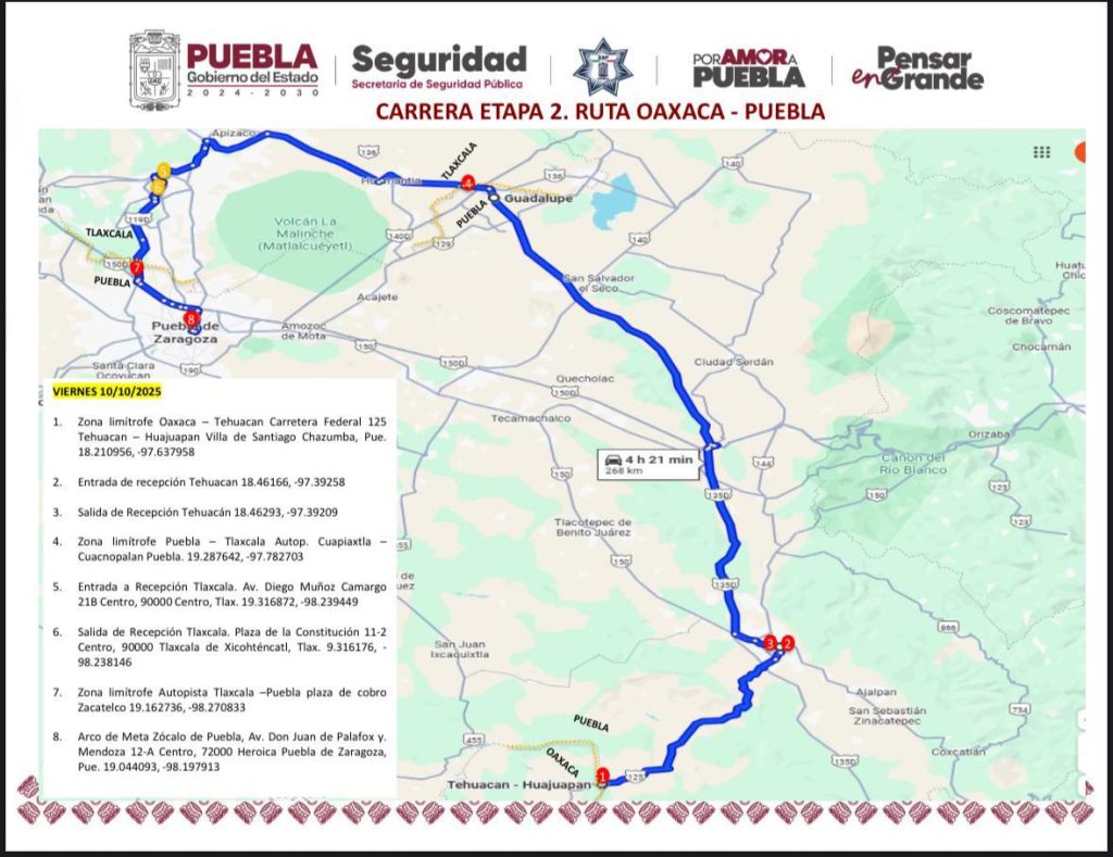 El recorrido continuará el sábado 11 de octubre, abarcando la región de la Mixteca Poblana y haciendo una escala en San Pedro Cholula, antes de partir con destino a la Ciudad de México.