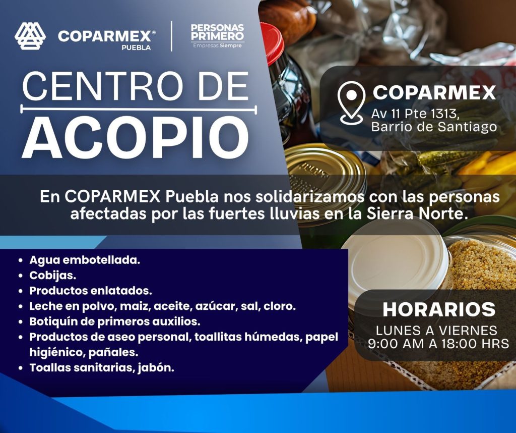 Además, se pusieron en marcha centros de acopio de víveres coordinados por el SEDIF, COPARMEX, SICOM y la Secretaría de Anticorrupción, destinados al apoyo de las familias en las zonas afectadas. La Secretaría de Salud informó que existe la capacidad hospitalaria y el equipo necesario para atender a los poblanos que lo requieran en la región.