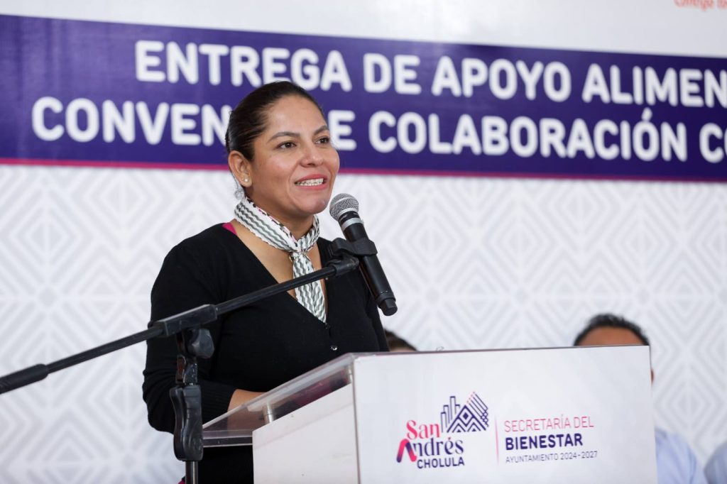 SAN ANDRÉS CHOLULA, Pue. – La presidenta municipal Lupita Cuautle Torres encabezó la entrega de apoyos alimentarios, resultado de un convenio de colaboración entre el H. Ayuntamiento de San Andrés Cholula e Industrias Bachoco S.A. de C.V., con el objetivo de fortalecer la alimentación de las familias en condiciones de vulnerabilidad.