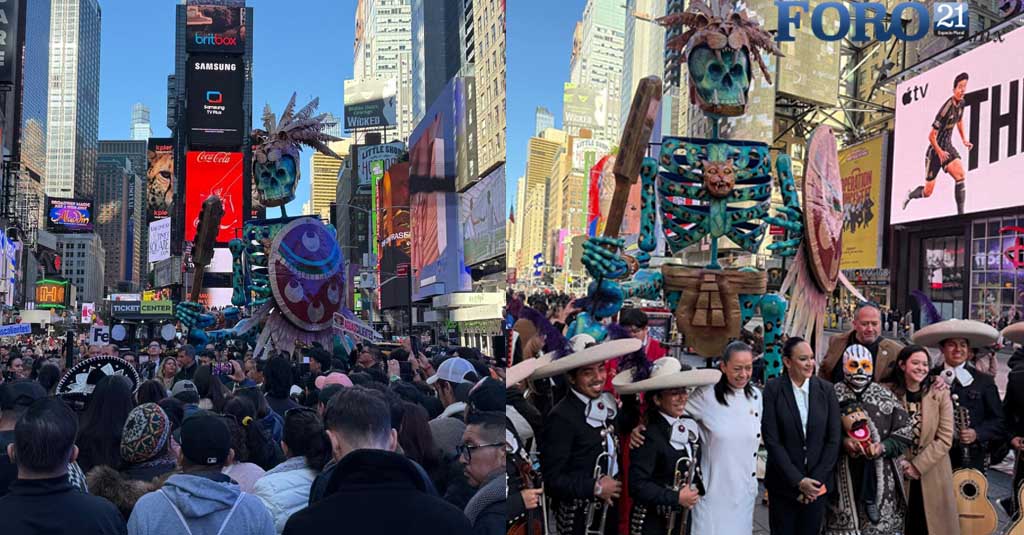 Las imponentes Catrinas permanecerán expuestas en Times Square hasta el 2 de noviembre.