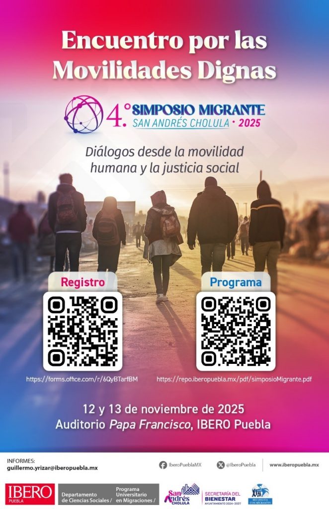 SAN ANDRÉS CHOLULA, Pue. – Con el propósito de fortalecer el análisis en torno a los procesos migratorios contemporáneos, la presidenta municipal Lupita Cuautle Torres y la Universidad Iberoamericana Puebla (IBERO) presentaron el 4° Simposio Migrante: Diálogos desde la Movilidad Humana y Justicia Social.