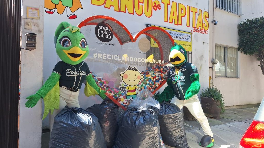 PUEBLA, Pue. – El Club de Béisbol Pericos de Puebla anotó otro «batazo de hit» en acciones de responsabilidad social al realizar la donación de 87.520 kilogramos de tapas de plástico al Banco de Tapitas Puebla.