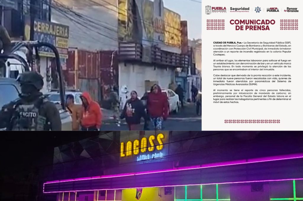 CIUDAD DE PUEBLA, Pue. – Un comando armado irrumpió la madrugada de este martes 18 de noviembre en el club nocturno Lacoss Night Club, ubicado en la 105 Poniente y 11 Sur, donde ejecutó a cinco personas y posteriormente incendió parte del establecimiento.