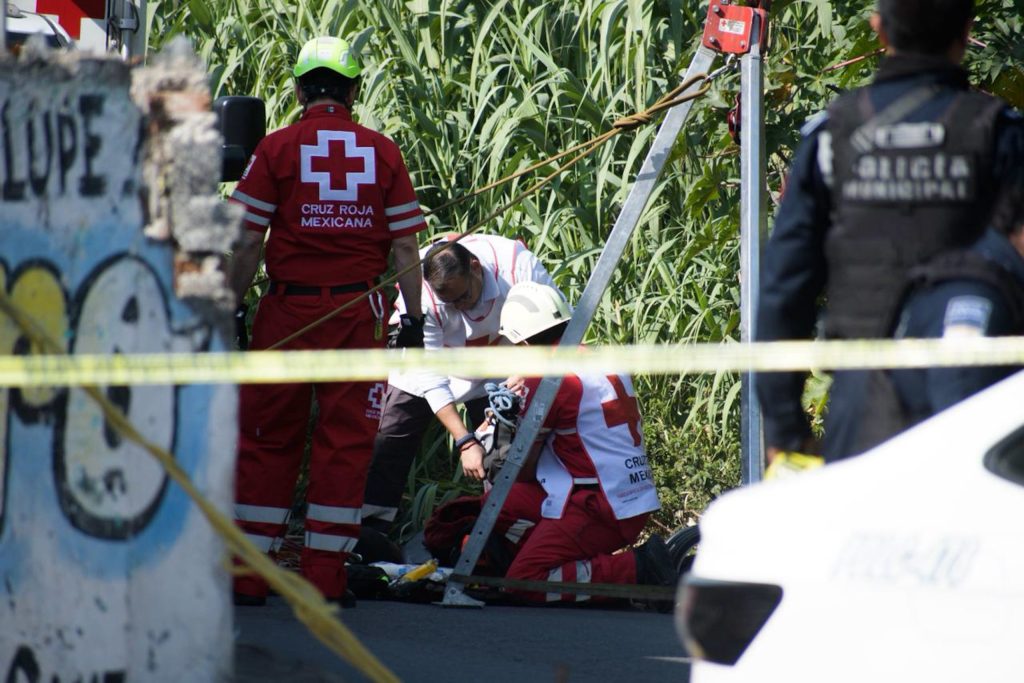 Para la recuperación del cuerpo, los agentes de la FGE contaron con el apoyo técnico de elementos de Protección Civil, quienes utilizaron equipo especializado para el ascenso desde el fondo de la barranca.