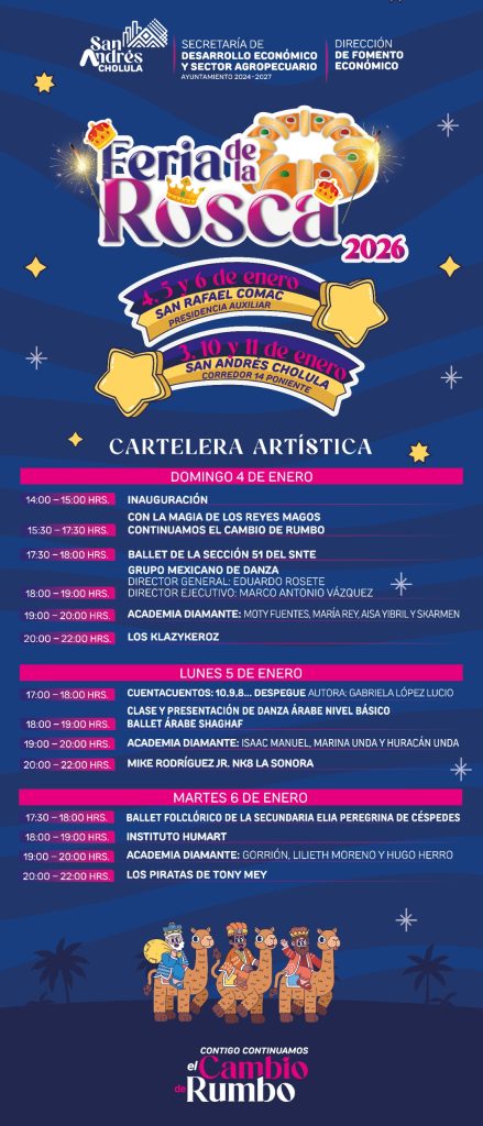 SAN ANDRÉS CHOLULA, Pue. – Con el objetivo de fortalecer la economía familiar, respaldar al comercio local y posicionar a San Rafael Comac como un punto de encuentro gastronómico, la presidenta municipal Lupita Cuautle Torres invitó a la ciudadanía a participar en la VIII Feria de la Rosca 2026 .