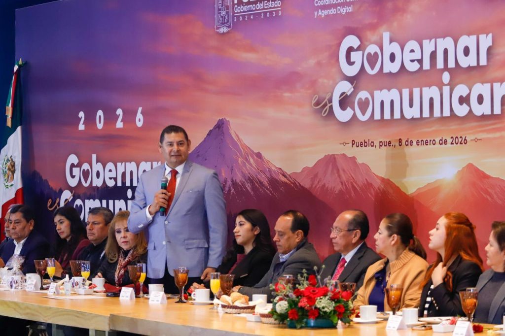 El gobernador enfatizó que para su administración, «Gobernar es comunicar» con transparencia y respeto, manifestando su afinidad con reporteros, camarógrafos y fotógrafos que acompañan las acciones de gobierno en todo el territorio poblano.