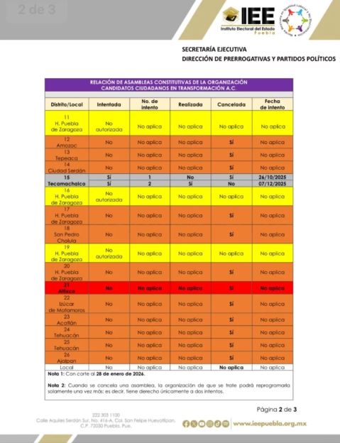 - Asambleas logradas: 1 de 26 distritos (Tecamachalco).