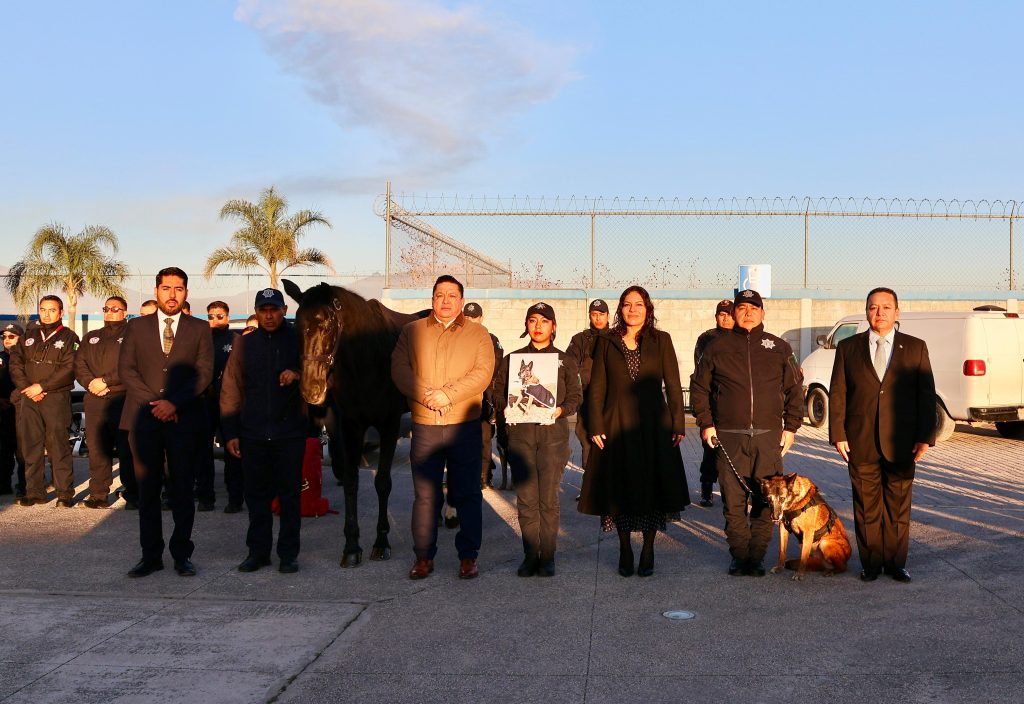 SAN ANDRÉS CHOLULA, Pue. — En una ceremonia cargada de simbolismo y respeto, la presidenta municipal Lupita Cuautle presidió el acto de jubilación de tres ejemplares fundamentales para la seguridad del municipio: Trinchera, la legendaria yegua de la Policía Montada, junto a Kia y Baco, valientes elementos de la Unidad Canina de la SSPPC.