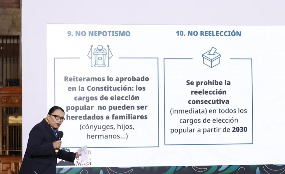 - Cero Nepotismo: Se prohíbe constitucionalmente que cargos de elección popular sean «heredados» a cónyuges, hijos o hermanos.