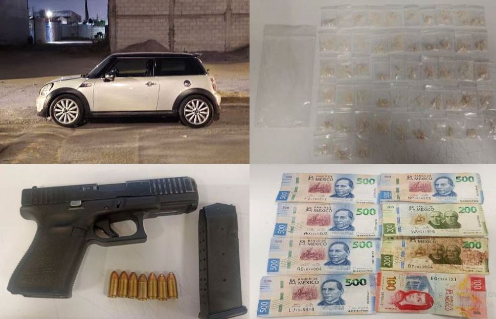 La detención ocurrió en la colonia 10 de Mayo. Al momento de ser interceptada, los agentes aseguraron un arma de fuego, cartuchos, sustancias ilícitas, dinero en efectivo y un vehículo de lujo MINI Cooper con placas de Tlaxcala. Tanto la detenida como los objetos fueron puestos a disposición del Ministerio Público para determinar su situación jurídica.