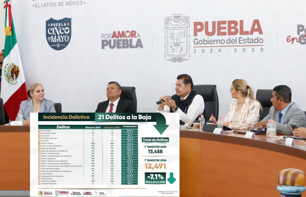 CIUDAD DE PUEBLA, Pue. — Con cifras en mano y un mensaje de cero tolerancia, el gobernador Alejandro Armenta Mier presentó el balance de seguridad del primer bimestre de 2026, destacando una disminución del 7% en la incidencia delictiva general respecto al año anterior. El mandatario fue enfático: en Puebla, la honestidad no es opcional, es la regla inquebrantable para todo aquel que sirva al Estado.