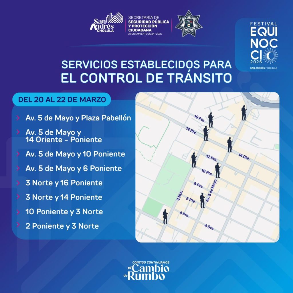 SAN ANDRÉS CHOLULA, Pue. — Con el objetivo de garantizar una celebración en paz y con saldo blanco, la presidenta municipal Lupita Cuautle Torres instruyó el despliegue de un operativo integral de seguridad y protección civil para el “Festival Equinoccio 2026”, que se llevará a cabo del 20 al 22 de marzo.